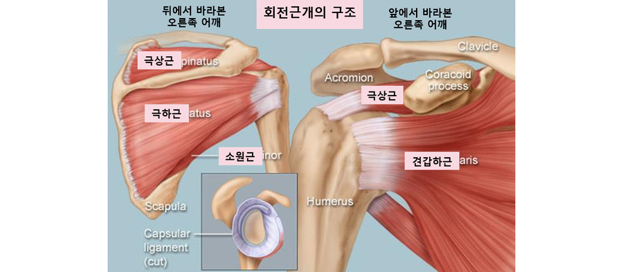 뒤쪽 회전근개 부분에 무리가 많이 발생했을 것이다.